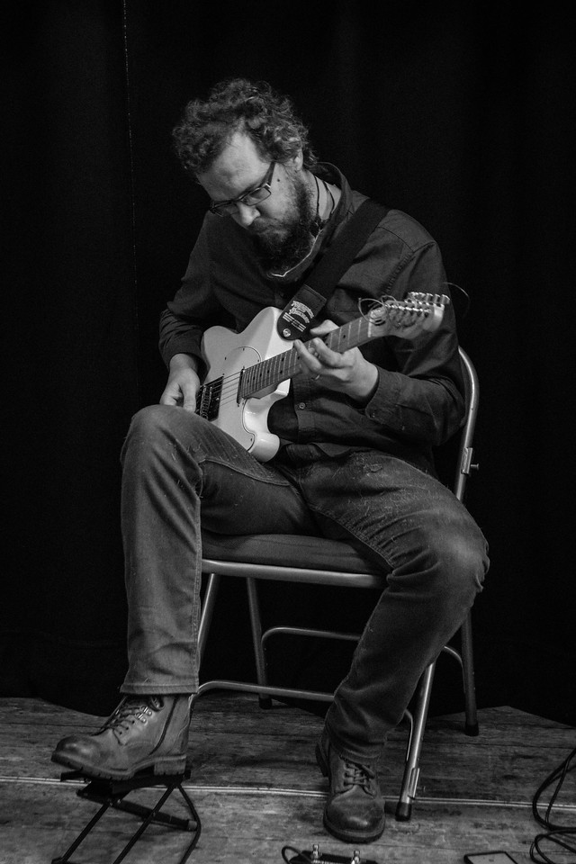Dominic Lash (guitar) is best known as a double bassist, but in recent years has also begun performing as a guitarist. His most regular collaborators include John Butcher, Angharad Davies, and Alex Ward. Dominic also runs the record label Spoonhunt, as well as curating the regular Cambridge improvised music series Soundhunt with N.O. Moore.